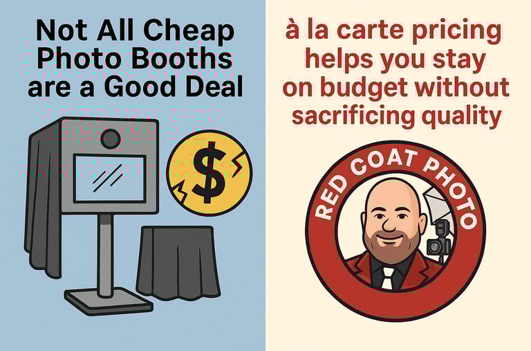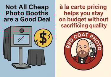Not all cheap photo booths are a good deal. Learn how hidden costs and low-quality setups can impact your event, and see how Red Coat Photo’s flexible à la carte pricing helps you stay on budget without sacrificing quality